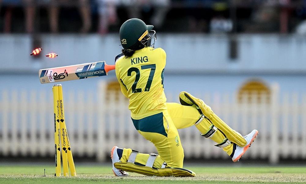 The home side then limited South Africa to 127 all out, with Alana King leading the way, securing four wickets for 26 runs in her five overs and securing the win with 6.3 overs remaining in the rain-shortened innings.