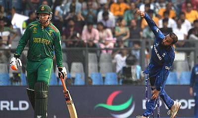 England, who won the toss, had Quinton de Kock caught behind off just the second ball of the innings.
