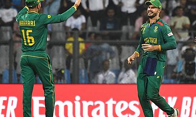 South Africa Fall of wickets: 1-4 (Quinton de Kock - 0.2 ov), 2-125 (Rassie van der Dussen - 19.4 ov), 3-164 (Reeza Hendricks - 25.2 ov), 4-233 (Aiden Markram - 34.6 ov), 5-243 (David Miller - 36.3 ov), 6-394 (Heinrich Klaasen - 49.1 ov), 7-398 (Gerald Coetzee - 49.5 ov)