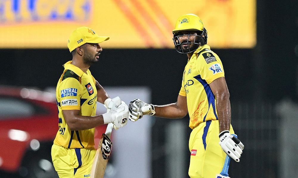 Chennai Super Kings' Vijay Shankar and Rahul Tripathi