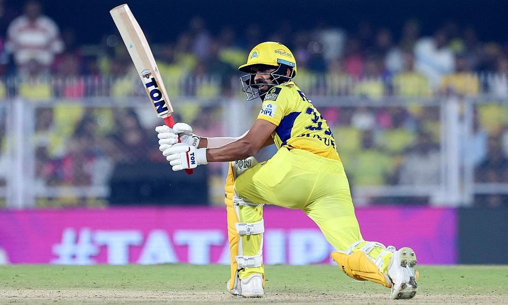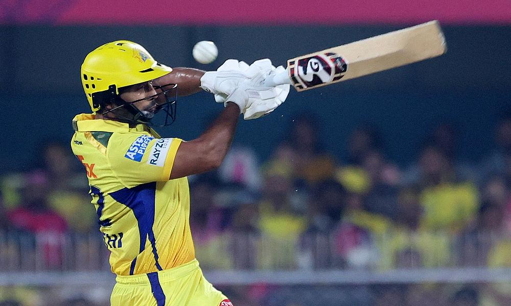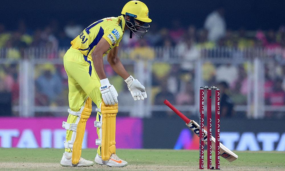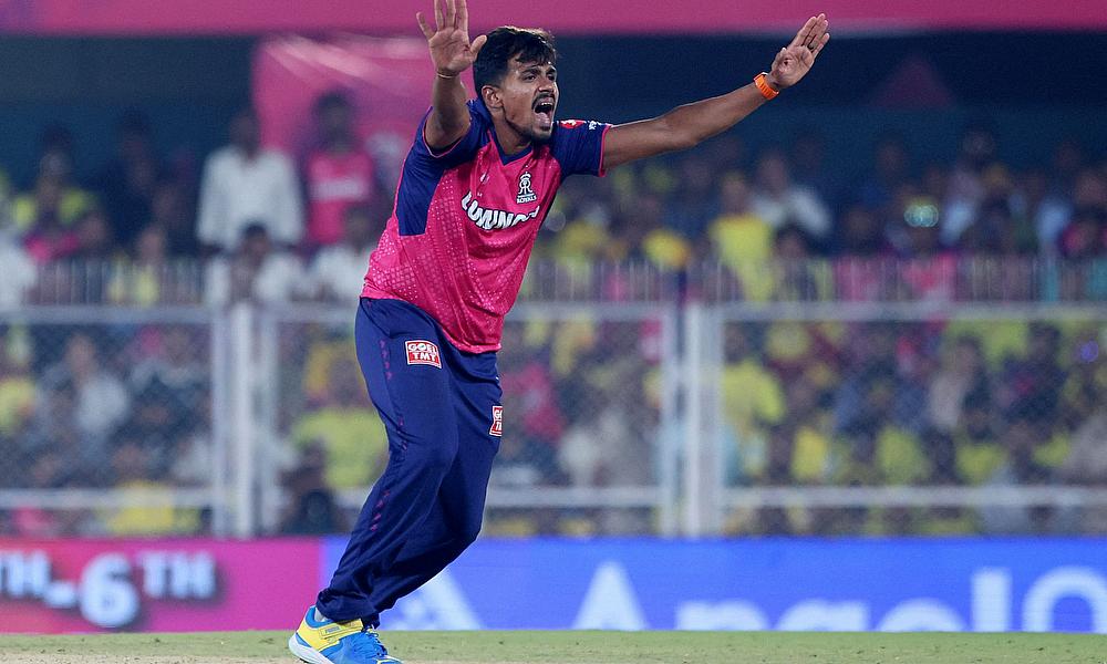 Rajasthan Royals' Jofra Archer celebrates after taking the wicket of Chennai Super Kings' Rachin Ravindra