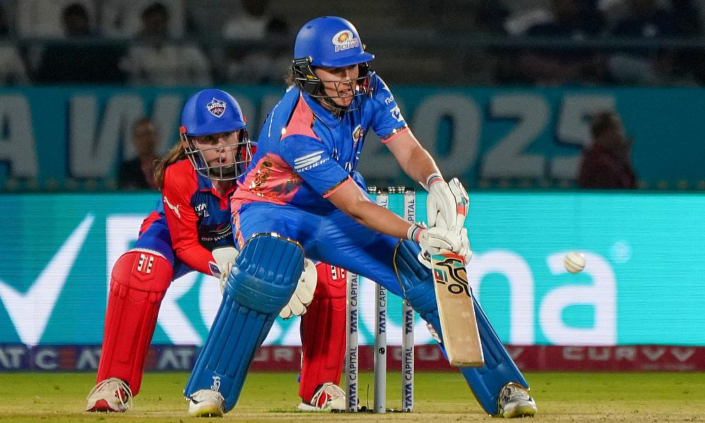 Nat Sciver-Brunt plays a shot during the WPL 2025