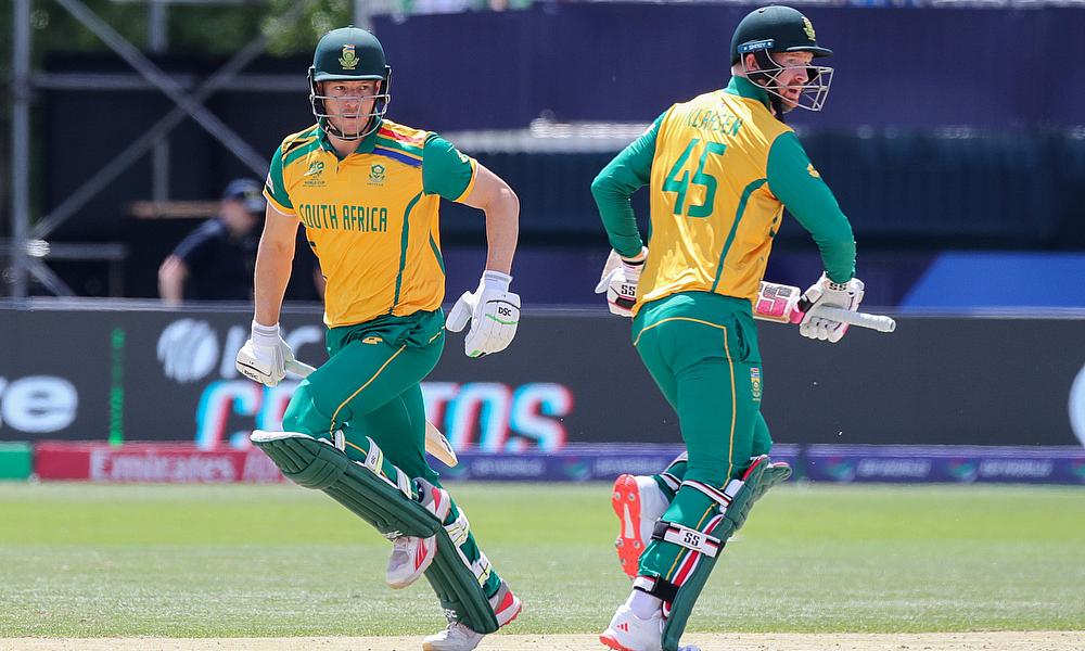 South Africa's David Miller and Heinrich Klaasen run between the wickets