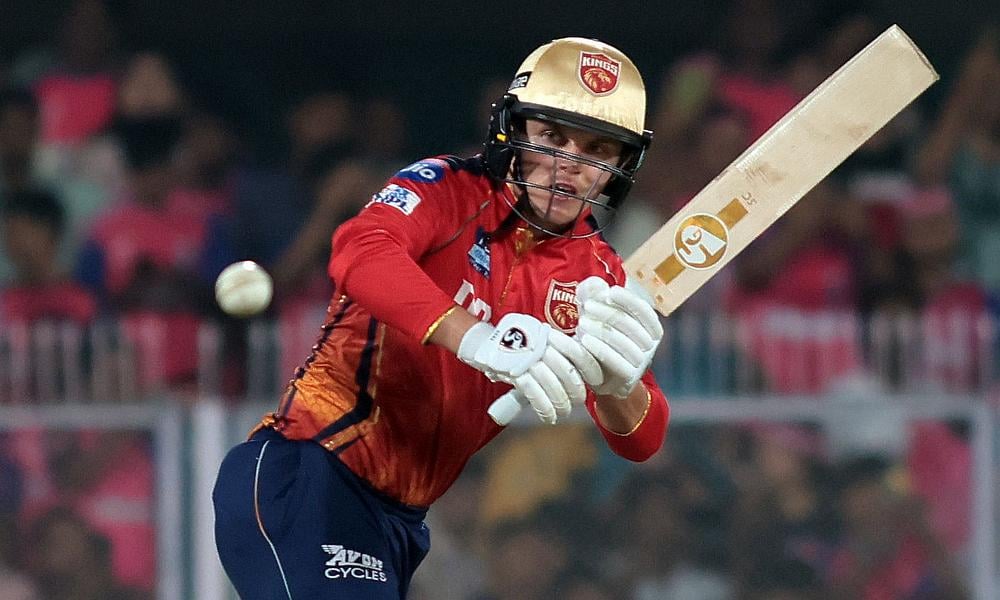 Punjab Kings captain Sam Curran plays a shot during the IPL