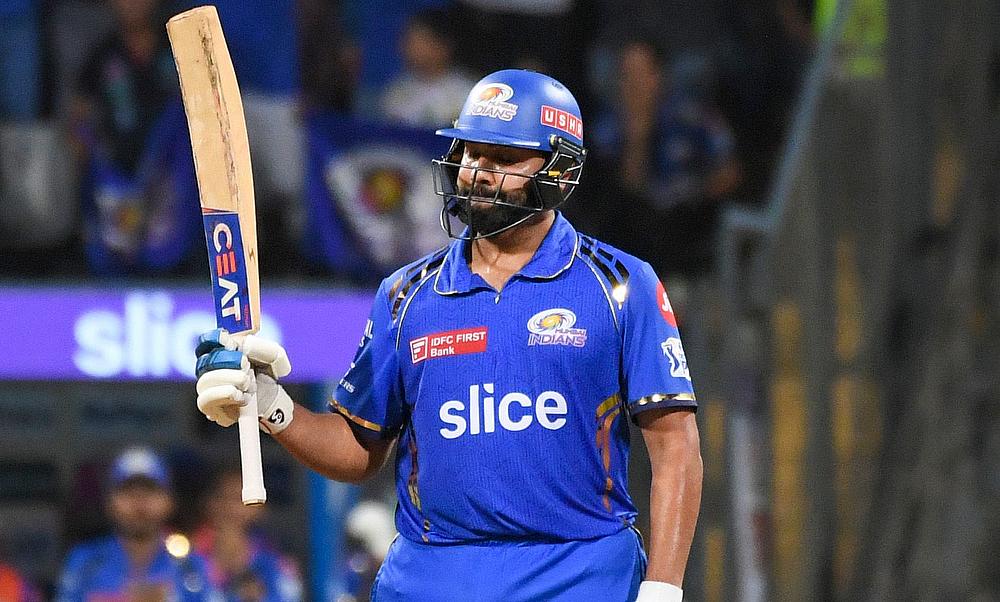 Mumbai Indians' Rohit Sharma celebrates his half-century