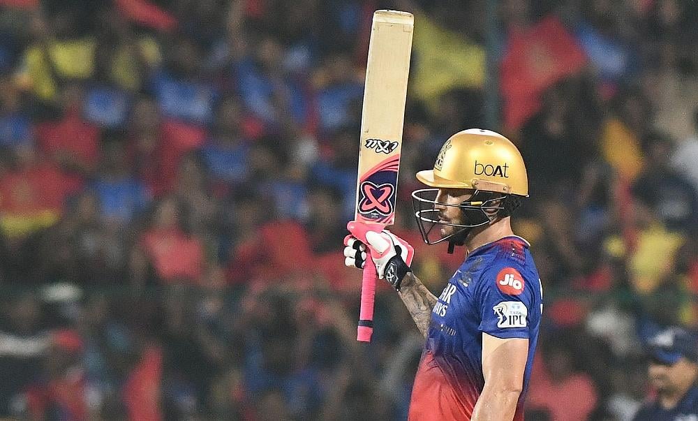 Royal Challengers Bengaluru captain Faf du Plessis celebrates his half-century