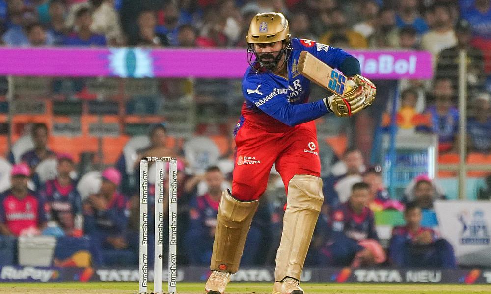 Royal Challengers Bengaluru's Dinesh Karthik plays a shot