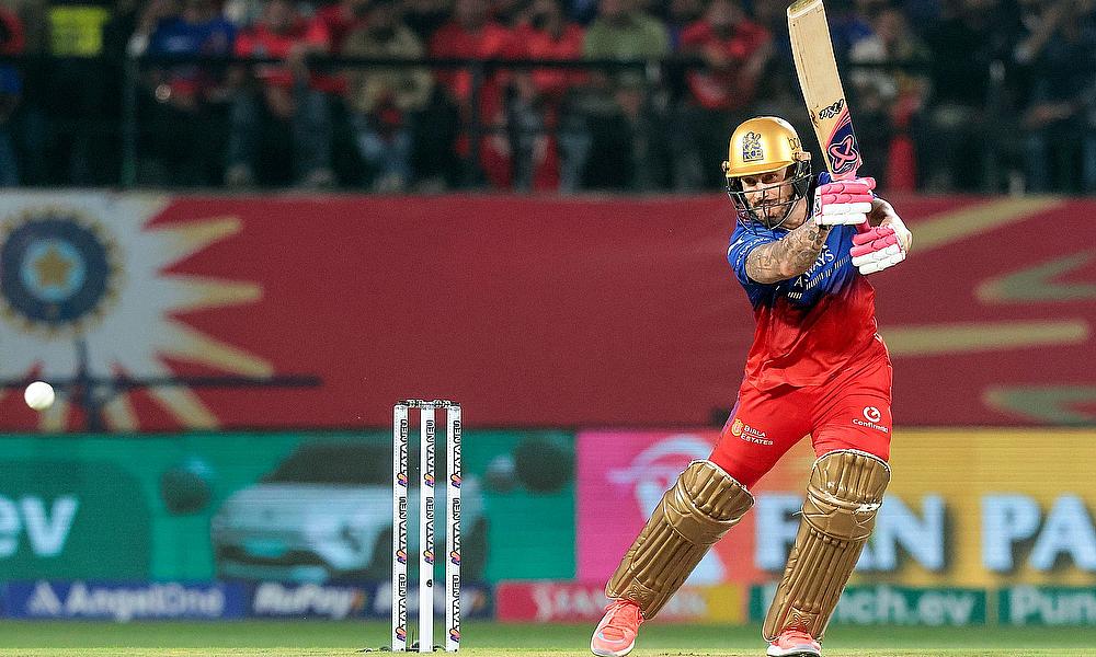 Royal Challengers Bengaluru captain Faf du Plessis plays a shot during the IPL