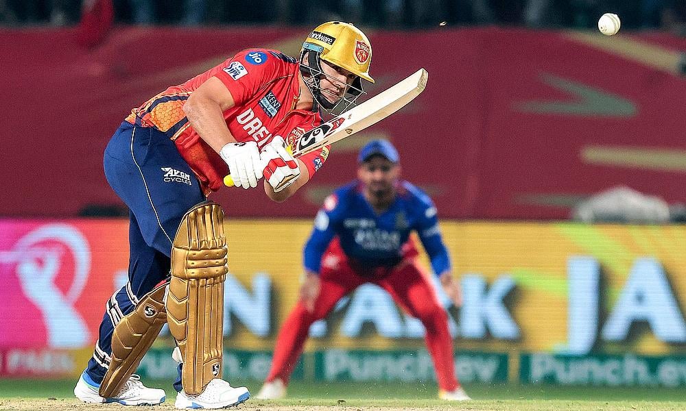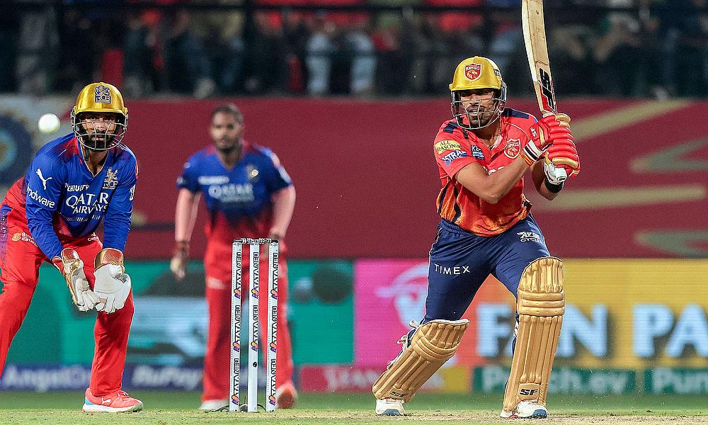 Punjab Kings' Shashank Singh plays a shot