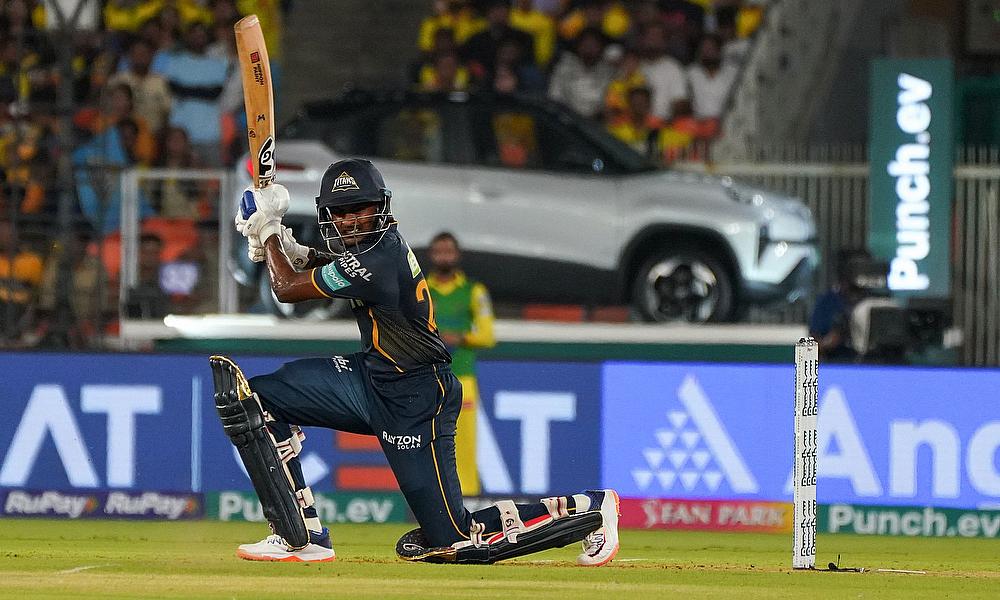 Gujarat Titans' Sai Sudharsan plays a shot