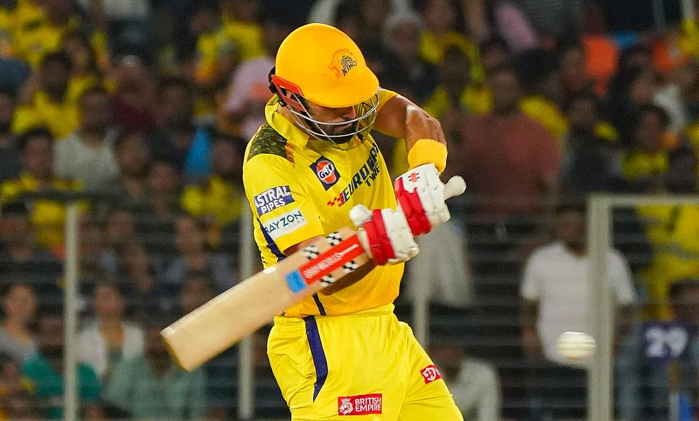 Chennai Super Kings' Daryl Mitchell plays a shot