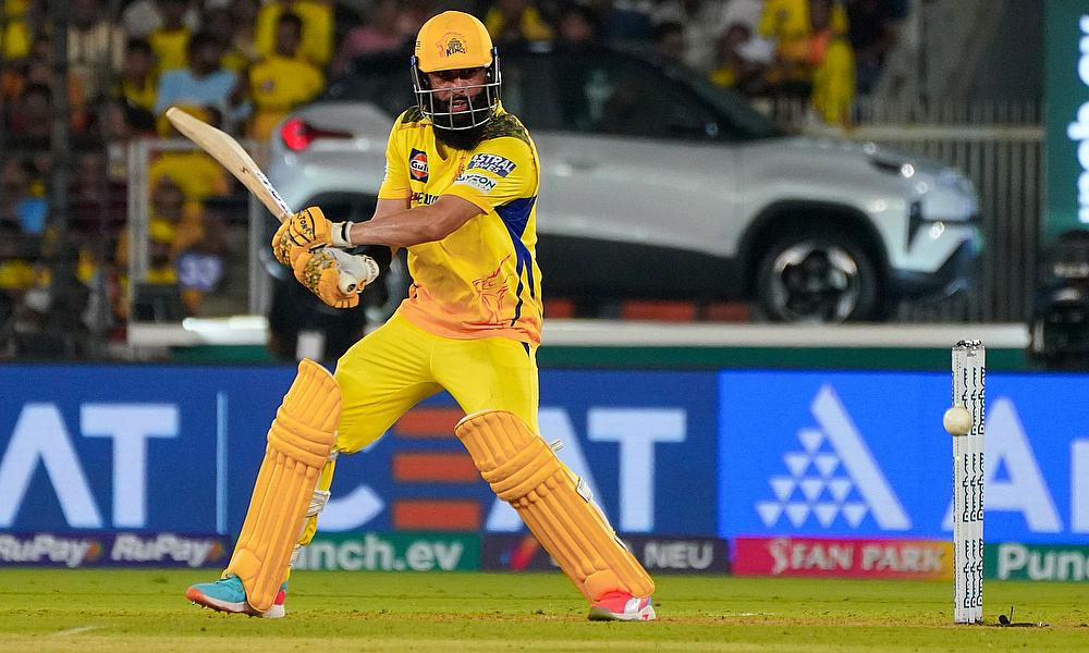 Chennai Super Kings' Moeen Ali plays a shot