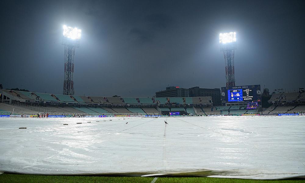 Ground is covered with sheets due to rain before the start of the IPL
