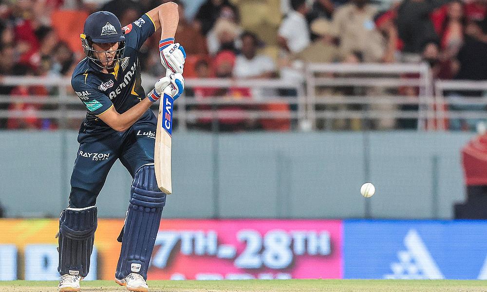 Gujarat Titans' captain Shubman Gill plays a shot