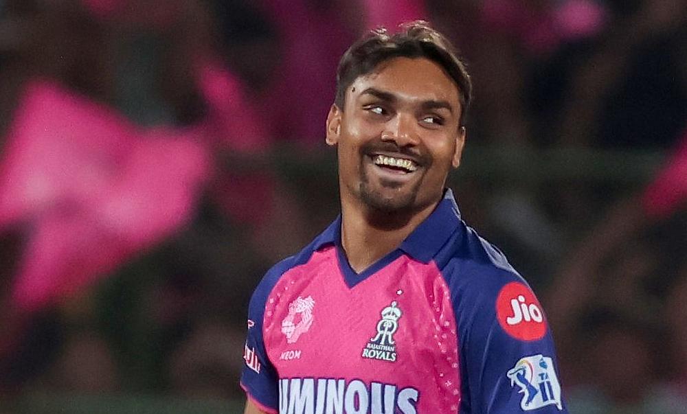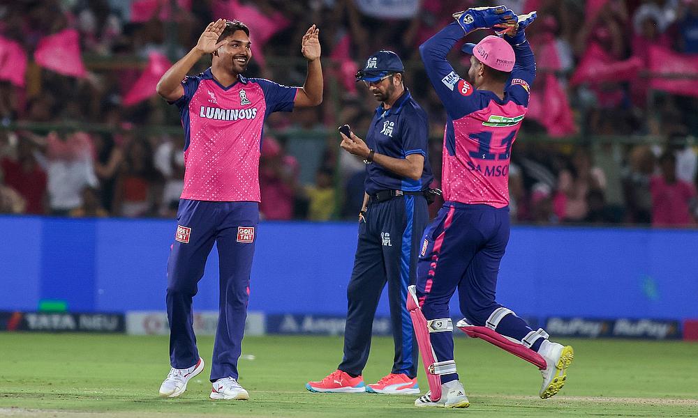 Rajasthan Royals' Sandeep Sharma celebrates