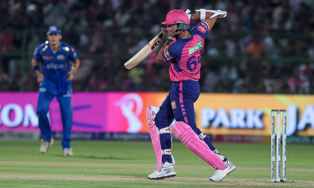 Rajasthan Royals' Yashasvi Jaiswal plays a shot during the IPL