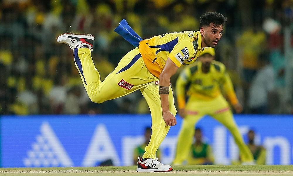 Chennai Super Kings' Deepak Chahar bowls a delivery during the IPL