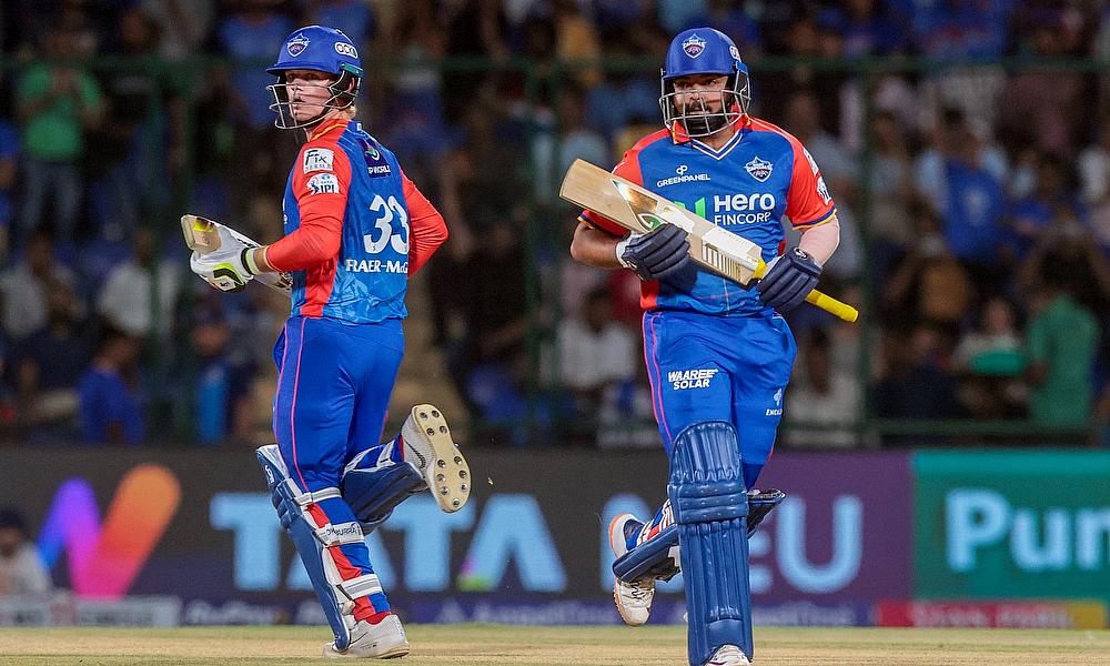 Delhi Capitals' Jake Fraser-McGurk and Prithvi Shaw run between the wickets