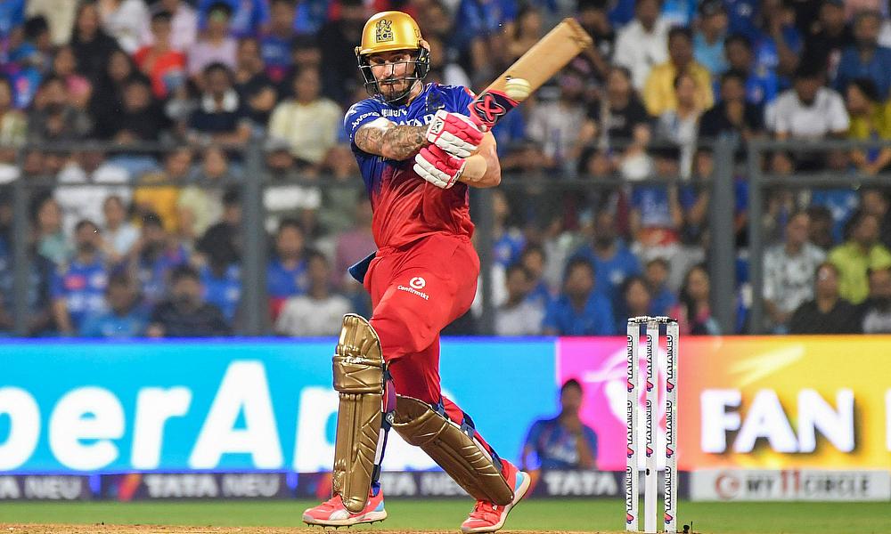 Royal Challengers Bengaluru captain Faf du Plessis plays a shot during the IPL