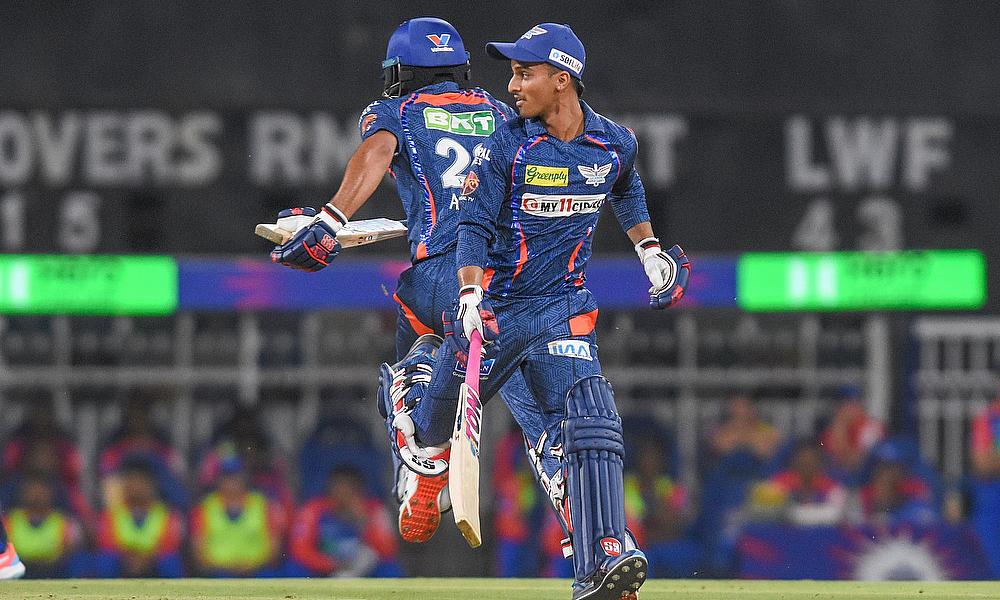 Lucknow Super Giants' Arshad Khan and Ayush Badoni run between the wickets