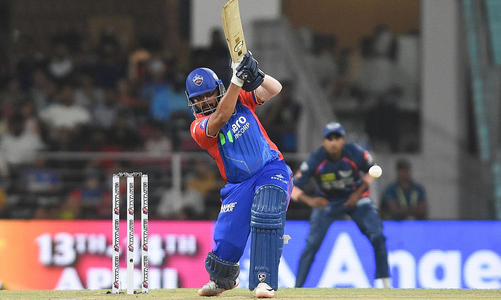 Lucknow Super Giants' captain KL Rahul plays a shot