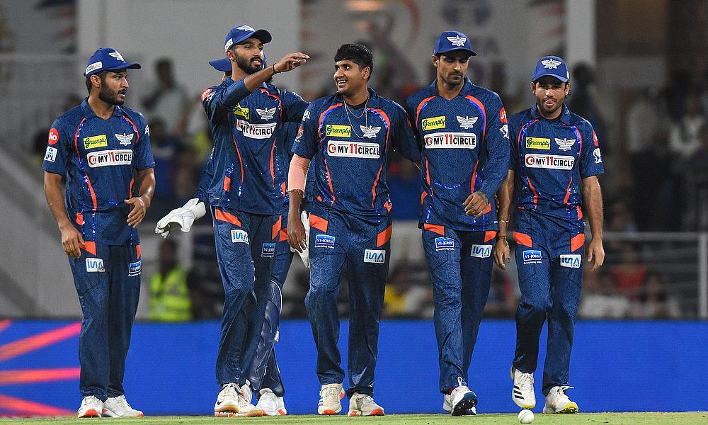 Lucknow Super Giants' Yash Thakur celebrates with teammates
