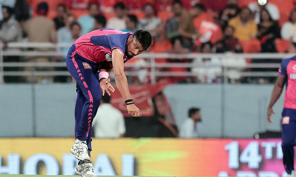 Rajasthan Royals' Kuldeep Sen bowls a deliver
