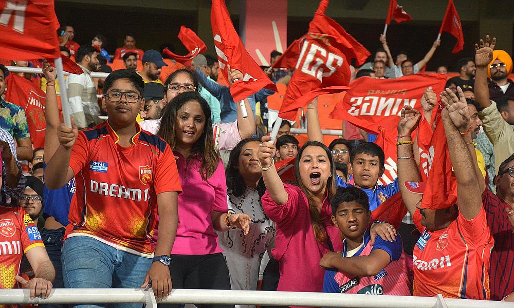 Spectators during the IPL match between Punjab Kings and Rajasthan Royals