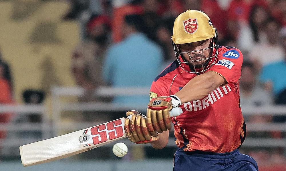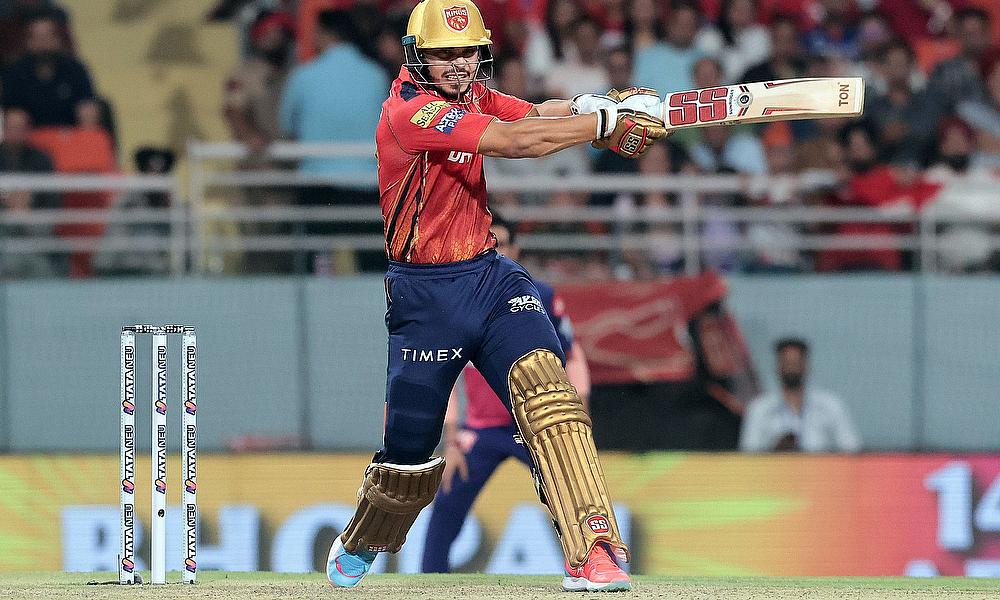 Punjab Kings' Shashank Singh plays a shot during the IPL